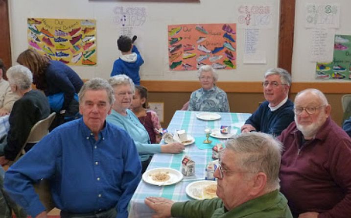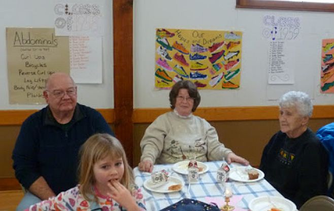 George Evarts, Raymonde Bessette, Jean Smith (far end), Larry Godard, Earl Bessette and David Pidgeon (this end)